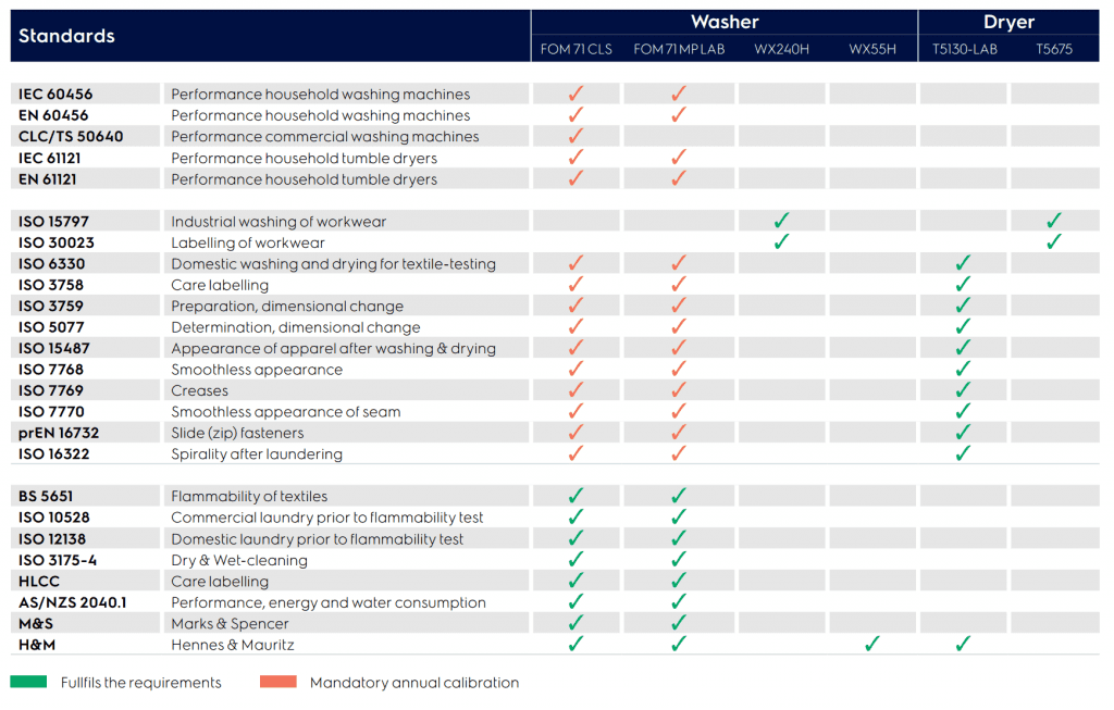 - Conforme agli standard IEC e ISO. La Wascator FOM 71CLS è l’unica macchina sul mercato che soddisfa gli standard IEC e ISO(IEC 60456, ISO 6330:1984 e ISO 6330:2000) ed è stata da essi approvata